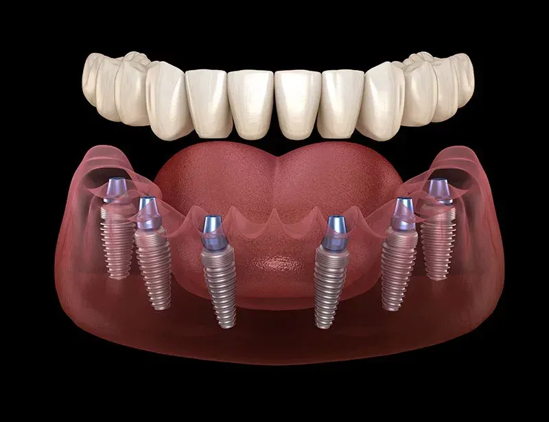 En muchos casos, colocamos dientes fijos en 24 horas sobre los implantes recién colocados.